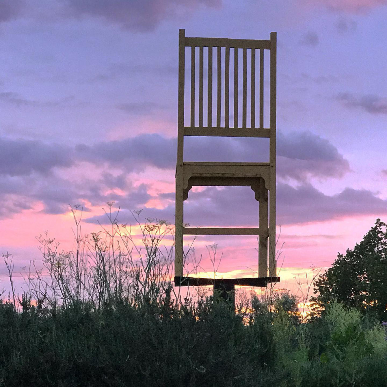 At the heart of our garden, you'll find a unique rose circle, crafted with over 8,000 eco-bricks collected during a community cleanup and recycling project. This circle surrounds our gigantic yellow chair, a whimsical creation from our on-site woodwork factory that serves as a central focal point.